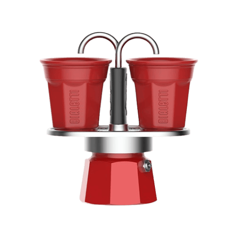 Bialetti Mini Express 2 Cup RED + 2 Mini Cups Double Stovetop Coffee Espresso Maker
