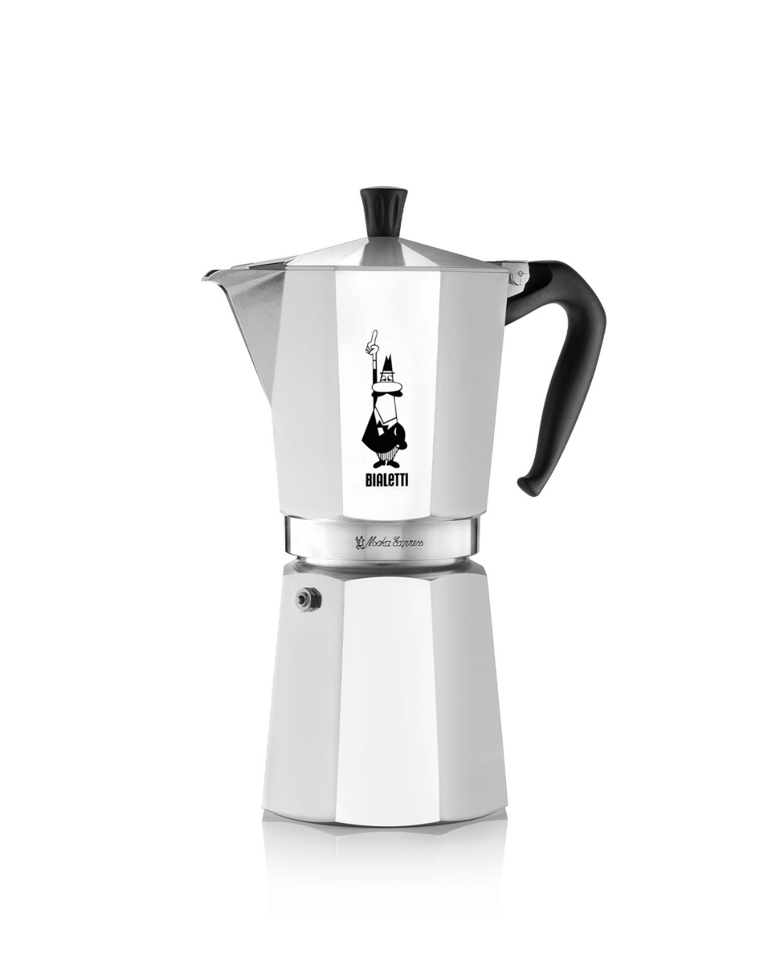 Moka Express is available in different sizes (1 / 2 / 3 / 4 / 6 / 9 / 12 /18 cups).