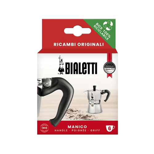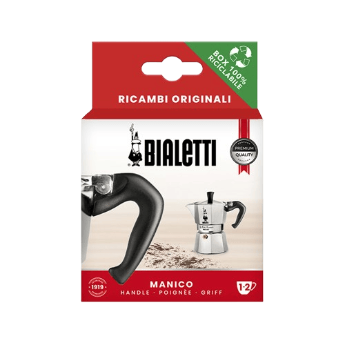 Original Bialetti handle compatible with model Moka Express 1/2, 3/4, 6, 9/12 and 18 cup variants.