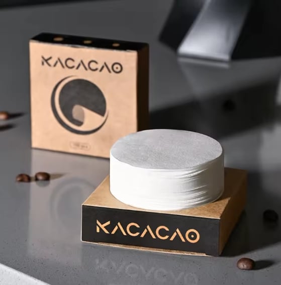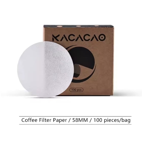 Coffee filter papers fit coffee makers 58mm filter baskets and hold ground coffee for espresso extraction.