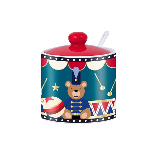 Add a touch of festive charm to your table with this porcelain sugar bowl, featuring an adorable drummer teddy bear.